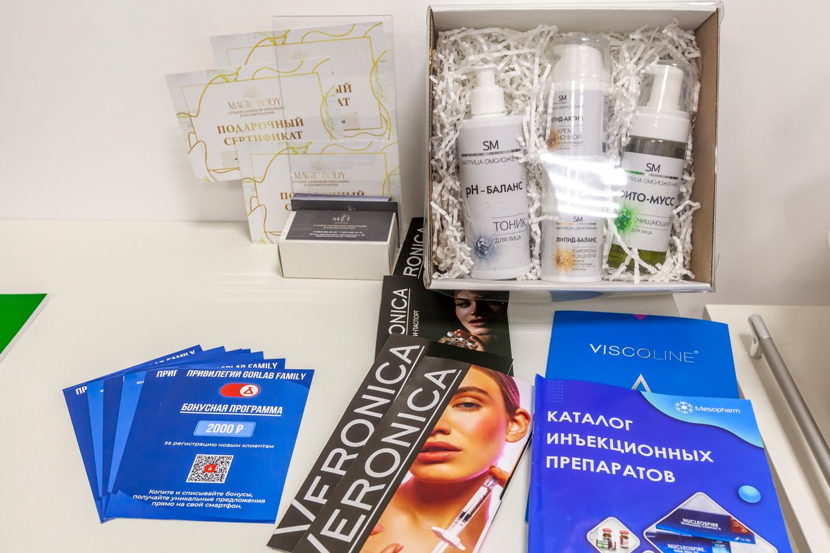 Также к услугам наших клиентов антицеллюлитный массаж, массаж лица, фотоэпиляция, ELOS, пирсинг, аппаратная и традиционная косметология, пилинг, массаж тела при помощи вакуума, биоревитализация, мезотерапия, коррекция формы бровей, окрашивание ресниц, перманентный макияж. Принимает специалист по мезотерапии кожи головы.